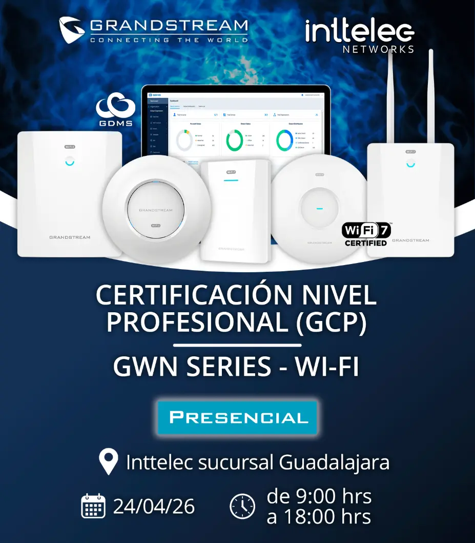 Transforma tu red Wi-Fi con los puntos de acceso Grandstream serie GWN76XX. Esta certificación te proporcionará los conocimientos y habilidades necesarios para diseñar, implementar y administrar redes inalámbricas empresariales de alta calidad, optimizando el rendimiento y la seguridad de tu negocio.