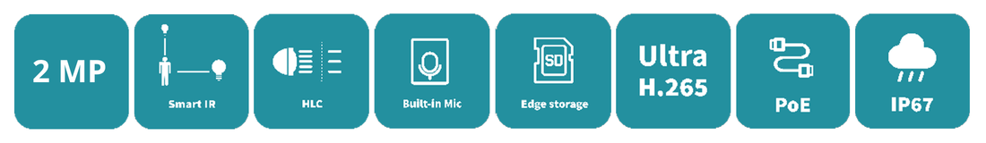 IPC-B122-APF28K, Cámara IP Bullet 2MP, Lente 2.8mm, IR 30m, Ultra 265, Micrófono, PoE-af ó 12Vcc, Exteriores IP67