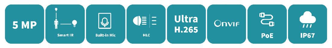 IPC-B125-APF28, Cámara IP Bullet 5MP, Lente 2.8mm, IR 30m, Ultra 265, Micrófono, PoE-af ó 12Vcc, Exteriores IP67