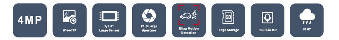 - Imagen de alta calidad con sensor CMOS de 4 MP y 1/1,8" y lente de gran apertura F1.0
