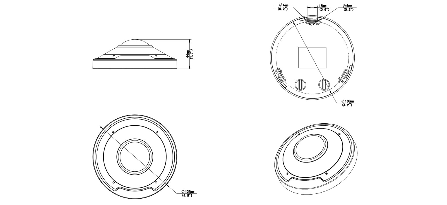 • Dimensiones:  Φ125 × 44 mm (Φ4.9" × 1.7")