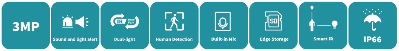 Su iluminación dual con infrarrojos (hasta 30 m) y luz blanca (hasta 10 m) garantiza visibilidad óptima durante el día y la noche, mientras que el WDR digital mejora el desempeño en escenas con alto contraste. Además, incluye micrófono y altavoz para comunicación bidireccional, así como disuasión activa mediante alarmas sonoras y visuales, funciones cada vez más valoradas en entornos residenciales y comerciales.