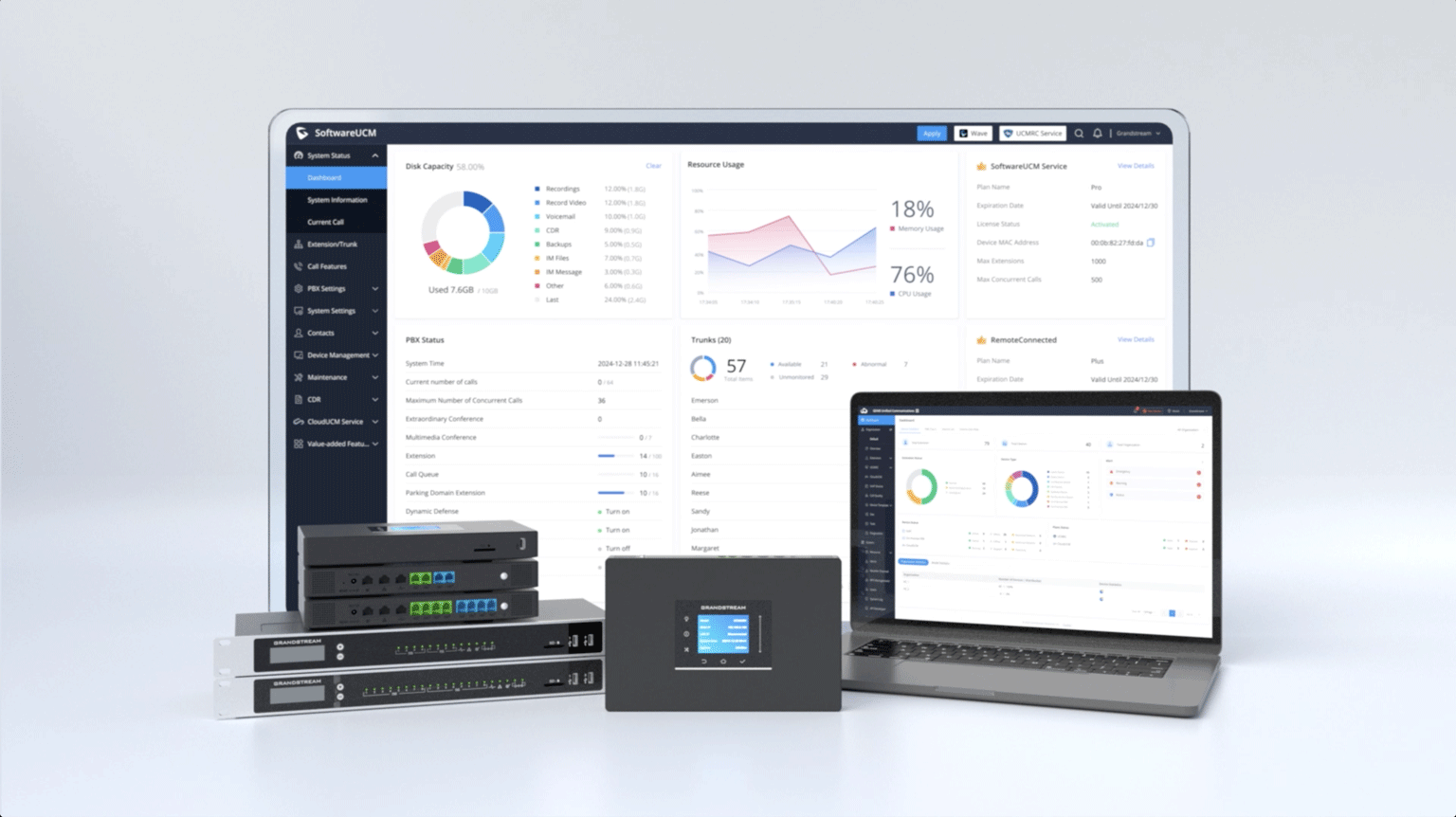 Grandstream está lanzando una central virtual (PBX) basada en software instalable en cualquier servidor local. SoftwareUCM ofrece una plataforma escalable de comunicación y colaboración empresarial para 50 a 5000 usuarios, con potentes funciones e integraciones que permiten a los equipos ser más productivos que nunca.
