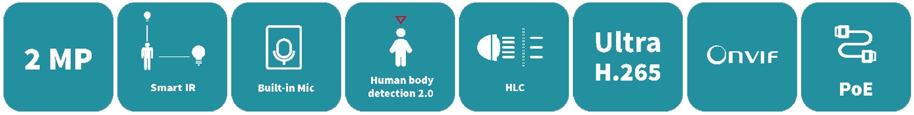 Cuenta con micrófono integrado, amplio rango de temperatura (-30°C a 60°C) y alimentación PoE, lo que la hace fácil de instalar. Su compatibilidad con ONVIF (Perfiles S y T) permite una integración sencilla con diferentes plataformas de seguridad