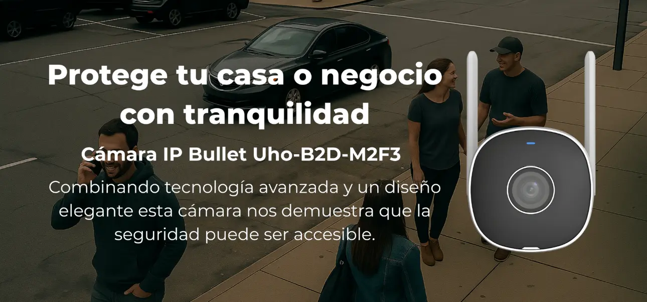 Uho-B2R-M2F3, Cámara IP Bullet WiFi, 2MP, Lente 2.8mm, Micrófono y Bocina, IR 20m, Micro SD, Ultra H.265, Exteriores IP67, serie Panda